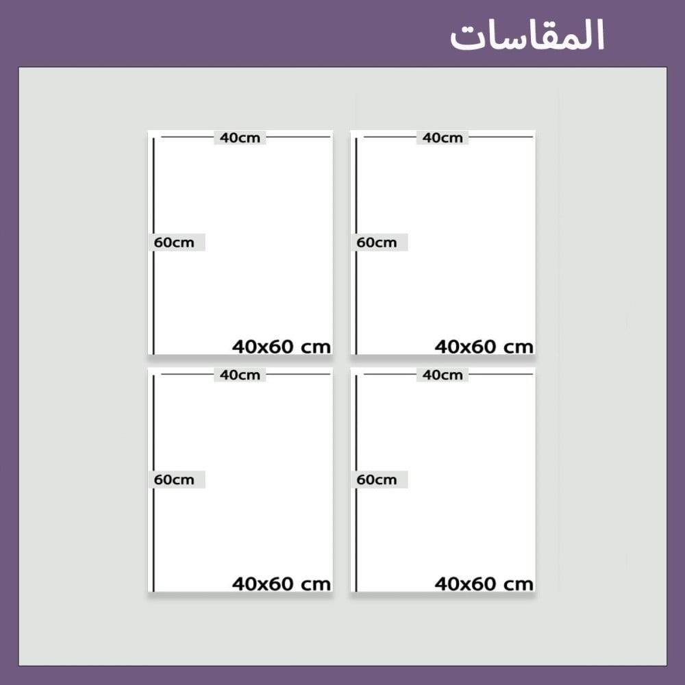 • اربع لوحات فنية جميلة مصنوعة من خامات عالية الجودة من قماش الكانفس الفاخر ( نسيج ناعم عالي الصلابة و مضاد للتجاعيد ).